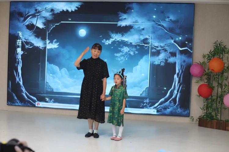 活动伊始,来自社区的越剧奶奶们化身 “传统文化使者”,带来《金玉良缘》《送信》经典选段。舞台上,孩子们身着传统服饰,用清脆的童声演唱《爷爷教我打月饼》、吟诵《水调歌头》。充满童真童趣的幼儿节目,成为了全场瞩目的焦点。