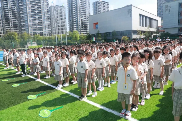 萧山区市心小学全校师生齐聚一堂,在学校操场开展了 “护旗敬华诞 少年蕴国心” 迎国庆主题活动。