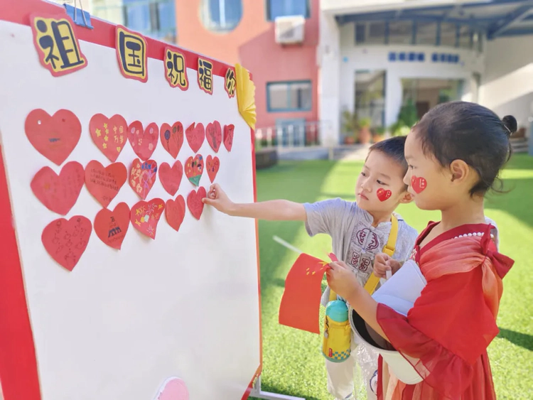 山河为卷,岁月为笔。在这个秋风送爽的特别日子里,稚嫩的童心以自己的方式,向祖国母亲献上真挚的祝福。